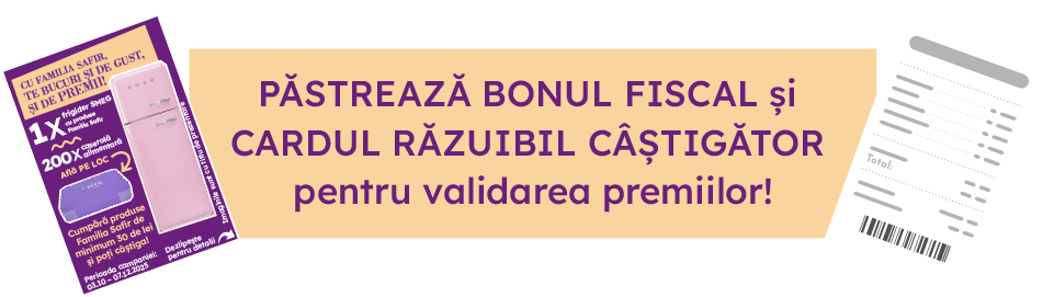 Nu uita că fiecare produs în plus achiziționat peste valoarea minimă de 30 de lei = o șansă în plus la premii.